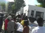 Des déplacés-es en file d'attente pour réclamer les allocations promises par la mairie de Port-au-Prince - Photo: Josué Michel