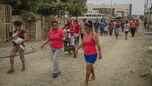 El 29 de noviembre del 2016, durante una visita para constatar los desalojos y el estado del barrio guayaquileño, sus habitantes recorrieron las calles y volvieron a exigir al gobierno ecuatoriano atención inmediata. Al fondo, el edificio del Hospital –inútil– contrasta con la infraestructura precaria del lugar. Foto: Vicho Gaibor.