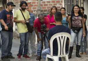 Residents of La Cascada neighborhood participate in a video advocacy workshop.